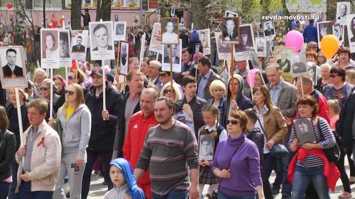 9 мая по центру Ревды прошел бессмертный полк. В нем приняли участие тысячи горожан. Люди несли в руках портреты своих отцов, дедов и прадедов – участников Великой Отечественной войны, тружеников тыла, узников фашистских лагерей.