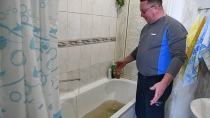 В Ревде в доме на ул. Энгельса из горячего крана течет черная жидкость. Энергетики говорят, что прорыва нет. Видео