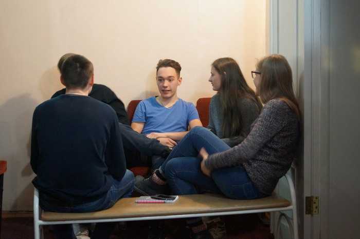31 марта состоится очень важный и ожидаемый всеми финал «Лиги юмора Ревда». Каждый день ребята работают над сценарием. За каждой шуткой, за каждой миниатюрой стоят долгие и напряжённые репетиции. Я заглянула в «закулисье Лиги», чтобы посмотреть, как идет подготовка. В зале ЦДО юмористы сидели на полу, на креслах, на сцене, они что-то придумывали, от каждой гениальной идеи вскакивали с мест, и хохотали. Работа кипела.