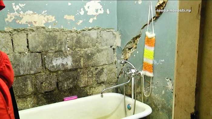 Из-за сгнивших полов вот-вот обрушится стена. Сейчас она практически ни на чем не держится. В ванной уже начали образовываться глубокие трещины.